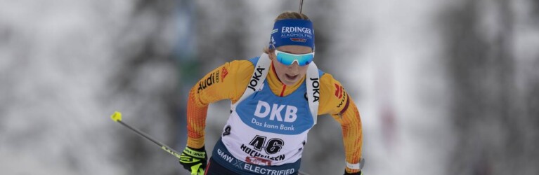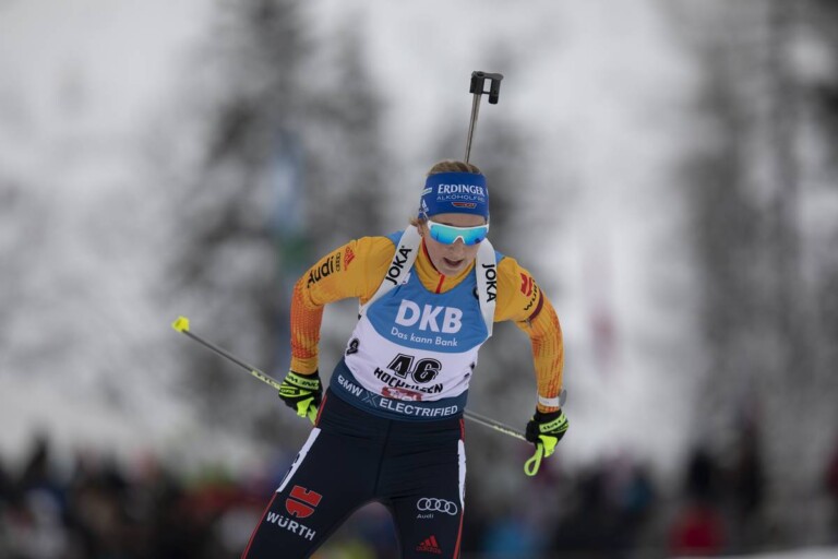 Franziska Preuss (GER) geht gesundheitlich angeschlagen in den Sprint, wird 54. und reist am Tag danach ab, um sich auszukurieren und für den nächsten Weltcup in Anncy Le Grand Bornand wieder fit zu sein. © Manzoni/NordicFocus