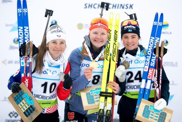 IBU Youth and Junior World Championships Biathlon, Shchuchinsk (KAZ) – Sprintrennen Jeanne Richard (FRA), Selina Grotian (GER), Sara Andersson (SWE), (l-r) © Yevenko Dmytro 1 2 3 4 5 6 7 8 9 10 11 12 13 © Bilder 1 - 3, 5 - 13: Yevenko/IBU; Bild 4: Yevenko Dmytro;
