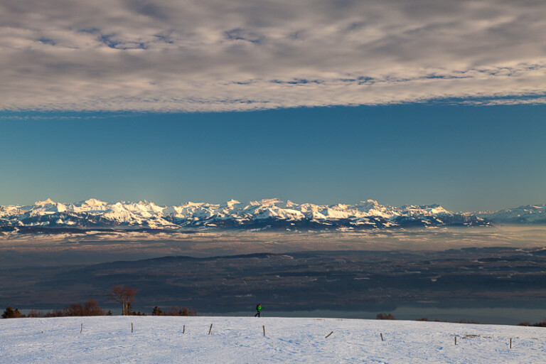 Alpenkette überm Neuenburger See, auf dem Weg zur Cabane Perrenoud (Neuenburger Jura) © Iris Kuerschner, www.powerpress.ch