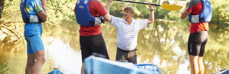 Kajak-Training auf dem Fluss Regen im Bayerischen Wald Demonstration der richtigen Griffweite, Ellenbogen im 90 Grad-Winkel, Paddel über dem Kopf. © Marco Felgenhauer / Woidlife Photography 1 2 3 4 5 6 7 8 9 10 11 12 13 14 15 16 17 18 19 20 ©