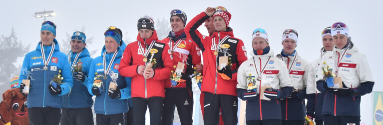 Nordische Kombination: Impressionen vom Teamwettkampf der JWM Die drei Erstplatzierten. © Corinna Heitmüller 1 2 3 4 5 6 7 8 9 10 11 12 13 14 15 16 17 18 19 20 21 22 © Bilder 1 - 14: Corinna Heitmüller; Bilder 15 - 22: STUDIO2 MEDIA | Marko Unger;