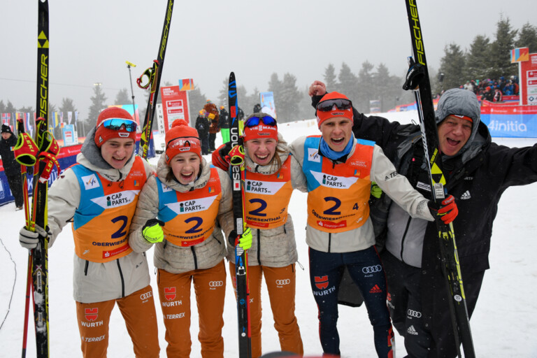 Nordische Kombination: JWM – Bildergalerie Mixed Team Christian Frank, Maria Gerboth, Jenny Nowak, David Mach (l-r): Glücklich über Silber. © Jan Simon Schäfer 1 2 3 4 5 6 7 8 9 10 11 12 13 14 15 16 17 18 © Bilder 1 - 18: Jan Simon Schäfer;