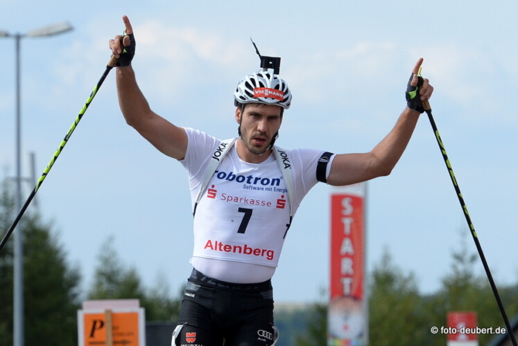 Nach dem Titel im Sprint hat Karolin Horchler mit einer souveränen Leistung auch den Deutschen-Meister-Titel in der Verfolgung gewonnen. Mit ihrer Top-Leistung am Schießstand und richtig schnell auf den Rollern war es schwer für ihre Verfolgerinnen an sie heranzukommen. Beim entscheidenden Schießen kam Karolin Horchler bereits aus der Strafrunde als Denise Herrmann (WSC Erzgebirge Oberwiesenthal) in die Strafrunde einbog. Franziska Preuß (SC Haag) blieb zwar fehlerlos, wurde aber auf der Schlussrunde von Denise Herrmann noch eingeholt. Mit 19 Trefffern gewinnt Karolin Horchler den Titel in der Verfolgung über 10 km vor Denise Herrmann (1-0-1-2) und Franziska Preuß (0-0-1-0). Franziska Hildebrand, nach dem ersten Schießen noch aussichtsreich an vierter Position, fiel nach drei Strafrunden im zweiten Schießen zurück und hat das Rennen schließlich aufgegeben. Laura Dahlmeier war in Altenberg wegen einer Zahn-OP nicht am Start; ob sie in Oberhof dabei ist, steht noch nicht fest. Simon Schempp will in Oberhof starten; in Altenberg hat er wegen Trainingsrückstand nach einer Schulterverletzung noch pausiert.