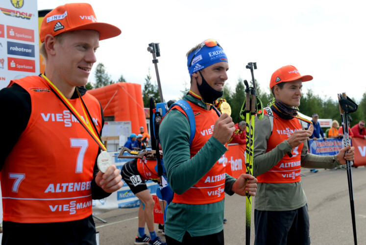 Nach drei anstrengenden Tagen für Deutschlands Biathletinnen und Biathleten mit verkürztem Einzel, Sprint und Verfolgung im Rahmen der Deutschen Meisterschaften 2020 im sächsischen Altenberg landet Denise Herrmann am Abschlusstag im ausverkauften Stadion vor 1.500 Zuschauern einen Start-Ziel-Sieg in der Verfolgung. Herrmann gewinnt nach Rang drei im Einzel und dem Titel im Sprint auch Meisterehren in der Verfolgung mit großem Vorsprung von 3:39,2 Min. Mit über eine Minute Vorsprung das Rennen aufgenommen, ließ Denise Herrmann ihren Verfolgerinnen nicht den Hauch einer Chance. Drei Schießeinlagen servierte sie fehlerfrei, bewahrte bei aufkommendem Wind im letzten Anschlag Nerven, wartete lange nach dem ersten Treffer, verfehlte die dritte Scheibe und ließ zwei Treffer folgen. Herrmann war längst aus der Strafrunde auf dem Weg zum Ziel bevor ihre nächste Verfolgerin Janina Hettich an den Schießstand einbog und kurz hinter ihr Franziska Preuß, Sophia Schneider und Maren Hammerschmidt, jede mit Chancen auf einen Podestplatz. Bei aufkommenden Windböen verfehlte Janina Hettich zwei Scheiben, Franziska Preuß nur eine und gemeinsam aus der Strafrunde kommend lieferten sie sich ein spannendes Duell auf der Schlussrunde mit dem besseren Ende für Franziska Preuß, die 5,7 Sek. vor Janina Hettich die Ziellinie überquerte. „Ich habe im Kampf auf der letzten Runde gemerkt, dass mir die Wettkampfhärte noch fehlt, aber ich bin mehr als zufrieden mit meinen Leistungen und froh, dass sich die Arbeit des Sommers ausgezahlt hat“, so Janina Hettich kurz nach dem Rennen. Anna Weidel (WSV Kiefersfelden) war vor ihrer dritten Schießeinlage noch mit Podestambitionen unterwegs, kassierte zwei Strafrunden und kam nach einem Nuller im finalen Schießen auf dem vierten Rang ins Ziel, vor Maren Hammerschmidt und Stefanie Scherer. Beste Tschechin wurde Marketa Davidova auf Rang fünf in der internationalen Wertung, Lucie Charvatova wurde Siebte.