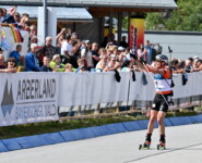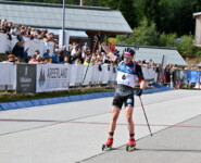 Nach den beiden Schießen im Liegen kamen Justus Strelow und Lucas Fratzscher gemeinsam zum ersten Stehendanschlag. Strelow hielt sich erneut schadlos, während Lucas Fratzscher gleich zwei Scheiben verfehlte. Justus Strelow hatte sich zwischenzeitlich einen guten Vorsprung erarbeitet und nun übernahm wieder Philipp Nawrath die Verfolgung, hinter ihm aus der Strafrunde kommend Lucas Fratzscher, gefolgt von Roman Rees, Leonhard Pfund und Simon Kaiser, der, nach bis dahin vier Strafrunden, mit einer Null im ersten Stehendanschlag den Schießstand als Sechster verließ. Zum alles entscheidenden letzten Schießen kam Justus Strelow mit gutem Vorsprung auf Schießbahn eins und setzte einen Schuss vorbei. Strelow war bereits Richtung Strafrunde unterwegs, als Philipp Nawrath sich zum Anschlag bereit machte. Auf zwei Fehlschüsse ließ er drei Treffer folgen und kreiselte, als Lucas Fratzscher seine Chance nutzte. Mit einer Null ging er hinter Strelow als Zweiter auf die Schlussrunde, gefolgt von Philipp Nawrath und Roman Rees, der ebenfalls zum Abschluss eine Scheibe verfehlte. Am Ende wurde Justus Strelow von den Zuschauern lautstark als Sieger im Ziel empfangen. Er verteidigte damit seinen Titel in der Verfolgung bei der Deutschen Meisterschaft 2024 in Altenberg. „Ich hab den ersten Deutschen Meister-Titel den ich gewonnen habe, heute verteidigt. Sehr gut. Das war das Ziel heute auf jeden Fall über das Schießen zu kommen und da kann ich jetzt mit gutem Selbstvertrauen in die letzte Trainingsphase vor dem Winter gehen,“ so Strelow nach dem Rennen. Lucas Fratzscher war mit einem Rückstand von 32,8 Sekunden in die Verfolgung gestartet und hat sich mit der schnellsten Netto-Laufzeit Silber gesichert, vor Philipp Nawrath auf dem Bronzerang. Dahinter platzierten sich Roman Rees, Leonhard Pfund und Simon Kaiser. Die Athleten haben sich durchwegs positiv zur Deutschen Meisterschaft geäußert und Justus Strelow meinte: „Es macht immer Spaß hier am Arber zu laufen. Es ist eine schöne abwechslungsreiche Strecke, ein bißchen schlängelich durch den Wald, nicht so eine breite Autobahn. Das sind immer schöne Wettkämpfe hier. Das Wetter war die letzten beiden Tage auch top und am Freitag die kleine Dusche haben wir auch überlebt. War schön hier und ich freue mich, wenn wir das nächste Mal hier sind.“ Philipp Horn konnte nach einer Sturzverletzung am Daumen in der Verfolgung nicht starten.