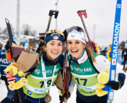 Die 20jährige Julia Kink aus Aschau im Chiemgau konnte über Gold im Massenstart60 der Juniorinnen bei der Jugend- und Junioren Weltmeisterschaft in Otepää jubeln. Sie spielte im Angang vorne mit und kam nach einer Null im ersten Anschlag gemeinsam mit Julia Tannheimer zum zweiten Schießen. Nach einer Strafrunde fiel sie etwas zurück und nach einer weiteren Strafrunde im dritten Schießen betrug ihr Rückstand auf die Finnin Sonja Leinamo an der Spitze 39,8 Sekunden. Im entscheidenden Anschlag brachte sie die Null und kam 9,9 Sekunden hinter der führenden Französin Fany Bertrand und hinter der Slowakin Ema Kapustova an dritter Position aus dem Schießstand. Mit einer Energieleistung und dem unbändigen Willen kämpfte sie sich auf der Schlussrunde erst an Kapustova und dann auch noch an der Französin vorbei und überquerte die Ziellinie mit 0,8 Sekunden Vorsprung als Junioren Weltmeisterin vor Kapustova auf dem Silberrang und Bertrand musste sich mit Bronze zufrieden geben. Julia Tannheimer fiel nach drei Strafrunden im zweiten Anschlag und einer jeweils einer weiteren Strafrunde aus den beiden folgenden Stehendanschlägen deutlich zurück, ließ aber nicht locker und arbeitete sich durch die schnellste Gesamtlaufzeit noch bis auf den elften Rang vor. Marlene Fichtner kam nach insgesamt vier Extrarunden auf Platz 14 ins Ziel und Alina Nussbicker erreichte das Ziel auf Rang 22 (3 Fehler). Die Österreicherin Anna Andexer war auf Rang sieben beste ihres Teams.