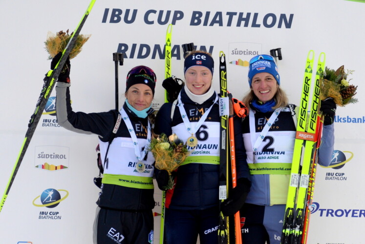 Später bei den Damen gewann Federica Sanfilippo mit 9,5 Sek. Vorsprung vor Vanessa Hinz. Die 32jährige Sanfilippo ist in Ridnaun zu Hause und freute sich besonders über ihren Heimsieg. Sowohl Sanfilippo als auch Hinz waren mit einer Strafrunde belastet. Die Französin Paula Botet komplettierte das Podest und auch hier sind die Abstände für die Verfolgung sehr knapp. Marion Wiesensarter blieb am Schießstand fehlerfrei und wurde Vierte. Auch Juliane Frühwirt hielt sich am Schießstand schadlos und kam auf Rang 11 ins Ziel. Selina Grotian kam mit jeweils einer Strafrunde aus den beiden Schießen als 21. ins Ziel, Lisa Spark (1:2) als 46. und Mareike Braun (2:1) als 54. Lydia Hiernickel aus der Schweiz platzierte sich nach einem Fehler im Stehendanschlag als Beste ihres Teams als Achte. Sie war erst zu Beginn der Saison vom Langlauf zu den Biathleten gewechselt. Die absolute Laufbestzeit bot einmal mehr die ebenfalls vom Langlauf zum Biathlon gewechselte Slowenin Anamarija Lampic. Mit vier Extrarunden im Gepäck musste sie sich allerdings mit Rang 15 im Sprint zufrieden geben. In der Gesamtlaufzeit war Lampic 37,2 Sek. schneller als die spätere Siegerin Federica Sanfilippo.