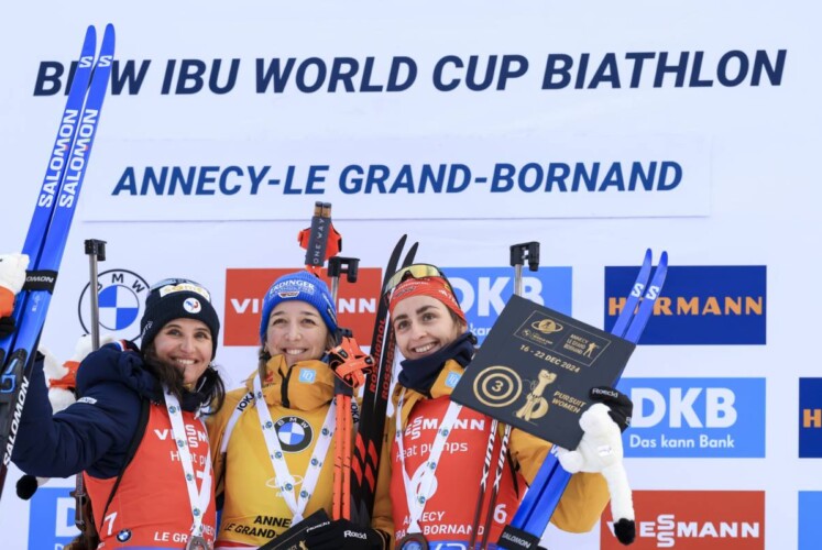 Justine Braisaz-Bouchet war in der Verfolgung beim Biathlon Weltcup in Annecy vor heimischem Publikum die Gejagte. Wie bei den Herren zuvor waren die Abstände minimal, Franziska Preuß nur 1,4 Sekunden nach ihr als Zweite gestartet, im gelben Trikot, und nur 13,7 Sekunden betrug der Abstand von Anamarija Lampic auf der dritten Position. Die Französin Lou Jeanmonnot als Siegerin der letzten Verfolgung in Hochfilzen trug das rote Trikot. Julia Kink musste krankheitsbedingt auf einen Start im Sprint verzichten, aber die anderen fünf Deutschen starteten, obwohl Franziska Preuß und auch Vanessa Voigt angaben, nicht zu einhundert Prozent fit zu sein. Allerdings musste Julia Tannheimer, wie der Deutsche Skiverband mitteilte, in der Verfolgung passen. „Sie äußerte während des gestrigen Rennens kein gutes Befinden. Um kein Risiko einzugehen, wird sie heute die Verfolgung auslassen. Im Verlauf des Tages wird entschieden, ob eine Teilnahme am Massenstart aus medizinischer Sicht sinnvoll ist,“ so Teamärztin Dr. Katharina Blume in der Mitteilung. Auch die Norwegerin Karoline Offigstad Knotten verzichtet auf einen Start.