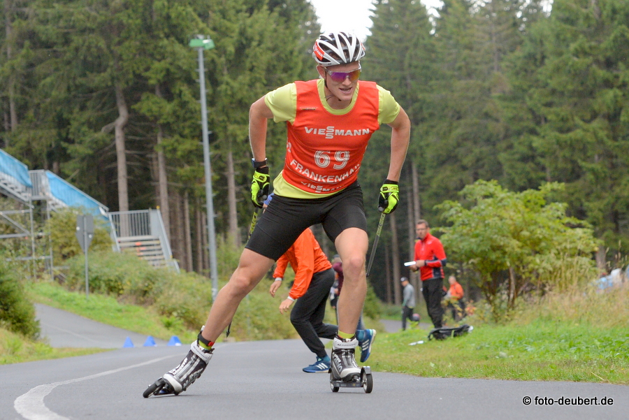 Beim anschließenden Speziallanglauf der Herren über 10,5 km war Benedikt Doll (SC Breitnau) in einer Zeit von 21:46,1 Min. der Schnellste. Johannes Kühn (WSV Reit im Winkl) wurde mit einem Rückstand von 5,8 Sek. Zweiter, gefolgt von Simon Schempp (SZ Uhingen), dem im Ziel nur 9,0 Sek. vom Sieger trennten. Die weiteren Plätze belegten Philipp Horn vom ausrichtenden Verein SV Frankenhain, Florian Hollandt (SWV Goldlauter) und Philipp Nawrath (SK Nesselwang). Ein hervorragendes Ergebnis erzielte der Junior Danilo Riethmüller vom WSV Clausthal-Zellerfeld. Mit nur 49,1 Sek. Rückstand landete er knapp vor seinem Vereinskollegen Arnd Peiffer auf dem achten Platz. Von den Langlaufspezialisten war in Oberhof nur Marius Cebulla aus der LG Ib am Start. Er kam nicht an die Laufzeiten der Biathleten heran und landete schließlich mit 1:35,8 Min. Rückstand auf Rang 23. „Es war ein ganz schöner Kampf um die Sekunden, man muss Vollgas los und dann schauen wie man durch das Rennen kommt, es war sehr, sehr hart und die zwei Pausen am Schießstand sind mir eigentlich lieber“, so Benedikt Doll nach dem Rennen. Für Simon Schempp war der Speziallanglauf sein erster Wettkampf in dieser Saison und die operierte Schulter hat gehalten. „Mit meinem Einstand bin ich erst einmal zufrieden, ich bin nicht so weit vom ersten Platz weg und habe mein Tempo gut durchziehen können“.