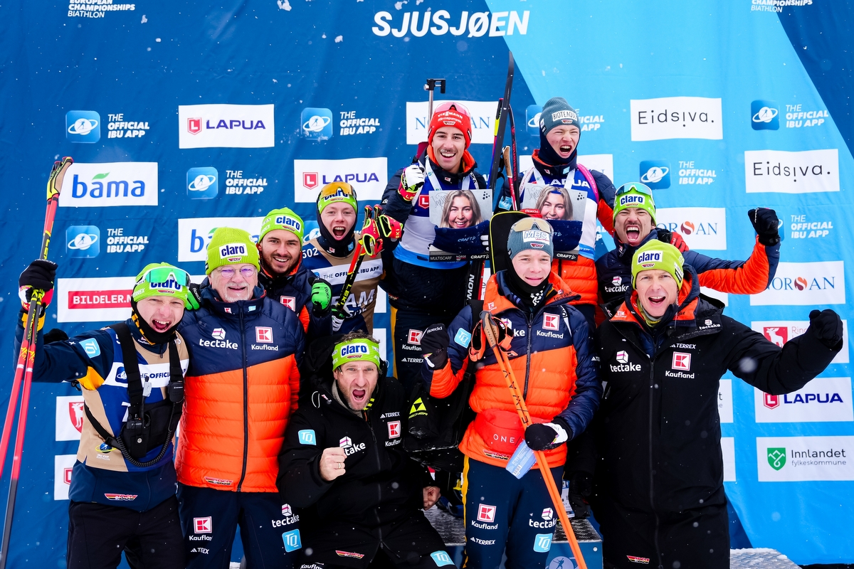 Erfolgreiche Verfolgungswettkämpfe für das DSV-Team bei der Biathlon Europameisterschaft in Sjusjoen. Leonhard Pfund holt Silber hinter dem Norweger Isak Frey und Simon Kaiser sichert sich Bronze. Bei den Damen gewinnt Gilonne Guigonnat ihren zweiten Titel in der Verfolgung und Marlene Fichtner wird Sechste hinter fünf Französinnen.