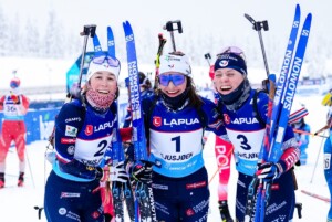 Das französische Damenteam überzeugte nicht nur am Schießstand sondern auch in der Loipe. Paula Botet schob sich mit der zweitschnellsten Schlussrunde, Schnellste war Sophie Chauveau, noch an Marlene Fichtner vorbei, die schließlich als Sechste ins Ziel kam und damit neben fünf Französinnen zur Flowerzeremonie aufgerufen wurde. Julia Kink begann mit der Null, ließ aber in der Folge bei jeder Schießeinlage eine Scheibe stehen und wurde Achte. Mareike Braun war insgesamt mit vier Fehlern aus den Liegendschießen belastet, räumte stehend jeweils ab und wurde 20. Selina Kastl hielt sich liegend beide Male schadlos, kassierte drei Strafrunden aus den Stehendanschlägen und überquerte die Ziellinie als 33.