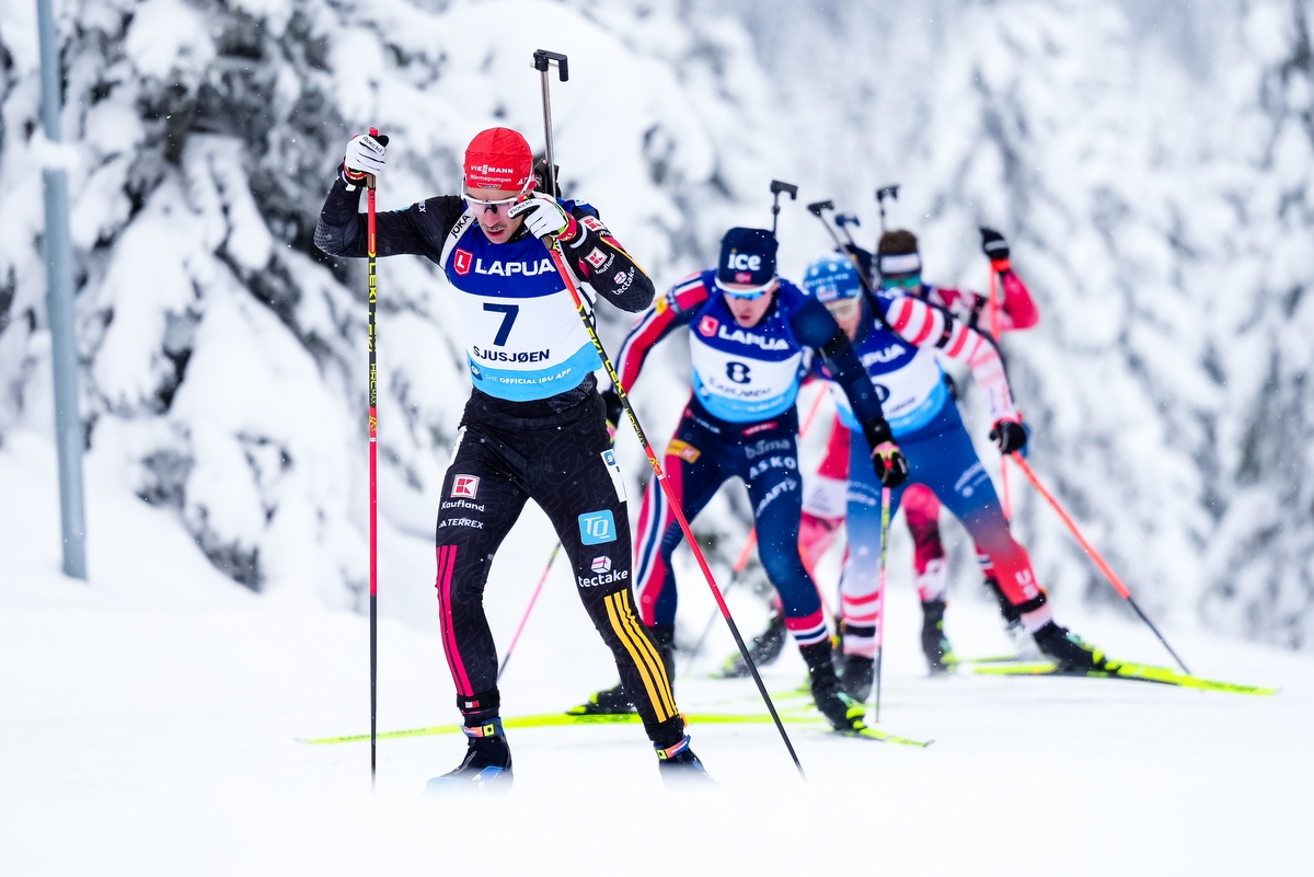 Neben Leonhard Pfund und Simon Kaiser hatten sich auch die vier weiteren DSV-Starter für die Verfolgung qualifiziert und mit Ausnahme von Roman Rees sich gut nach vorne gearbeitet. Elias Seidl hat die beiden Schießen im Liegen fehlerfrei absolviert, stehend verfehlte er jeweils eine Scheibe, dennoch konnte er sich von Platz 24 auf den zehnten Rang verbessern. Hinter ihm kam Danilo Riethmüller als Elfter ins Ziel. Mit drei Strafrunden belastet und der schnellsten Laufzeit in der Schlussrunde verbesserte er sich um zwei Positionen gegenüber dem Sprint. Johannes Kühn blieb drei Mal fehlerfrei und im entscheidenden Schießen kassierte er zwei Strafrunden und hat sich damit um einen Podestplatz gebracht. In der Schlussrunde ebenso schnell wie Riethmüller hat Kühn noch Plätze gut gemacht und das Ziel als Zwölfter überquert. Roman Rees dürfte mit seinem Rennen nicht zufrieden sein. Bei den ersten drei Schießen kassierte er jeweils eine Extrarunde und im letzten Schießen blieben dann weitere drei Scheiben stehen. Damit war das Rennen für ihn definitiv gelaufen und in der Schlussrunde musste er auch nicht mehr alles geben. Rees überquerte die Ziellinie auf Platz 43.