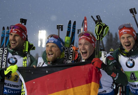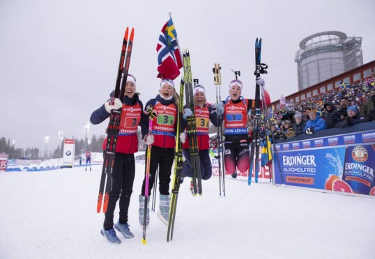 Norwegen gewinnt die WM-Premiere der Single-Mixed-Staffel vor Italien und Schweden. Für das deutsche Team blieb nur Blech…