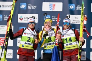 Estere Volfa (LAT), Oleksandra Merkushyna (UKR), Elza Bleidele (LAT), (l-r) © Deubert/IBU