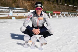 Merkushyna lief als Führende in die Schlussrunde, 22,6 Sekunden dahinter Estere Volfa (LAT) und an dritter und vierter Position bogen Silje Berg-Knutsen (NOR) und die Deutsche Sydney Wüstling zeitgleich im Kampf um Bronze in die letzte Runde. Hinter den beiden liefen allerdings die weitere starke Lettin Elza Bleidele und die Italienerin Carlotta Gautero. Mit drei Strafrunden im Gepäck und einem Vorsprung von 19,9 Sekunden wurde Oleksandra Merkushyna nach Silber im Einzel Junioren-Weltmeisterin im Massenstart. Estere Volfa gewann nach vier Strafrunden Silber und ihre Teamkollegin Elza Bleidele komplettierte das Podest nach einem starken Schlusssprint. Volfa und Bleidele holten zusammen in der Mixed-Staffel bereits den Titel und Gold. Silje Berg-Knutsen wurde Vierte, Carlotta Gautero Fünfte und die Finnin Inka Hämäläinen komplettierte die Top-6. Die 17jährige Sydney Wüstling überquerte die Ziellinie nach insgesamt zwei Strafrunden als Achte und damit beste Deutsche. „Beim ersten Schießen habe ich Treffer vor Zeit gemacht in der Hoffnung, dass ich die Null schieße und das ging gut,“ so die Deutsche im ARD-Stream nach dem Rennen. „Auf der letzten und vorletzten Runde hat es mir so die Energie gezogen, es ging gar nichts mehr.“ Johanna Lehnung begann mit zwei fehlerfreien Serien und lag da noch im Bereich einer Medaille. Im dritten Schießen fiel eine Scheibe nicht und im vierten blieben dann zwei stehen. Am Ende erreichte sie nach drei Extrarunden das Ziel als Elfte. Leni Dietersberger begann mit drei Fehlschüssen im ersten Anschlag, ließ die Null folgen, aber in der Folge kassierte sie noch zwei weitere Strafrunden und sortierte sich als 30. in die Ergebnisliste ein. Melina Gaupp gab das Rennen nach dem dritten Schießen auf.
