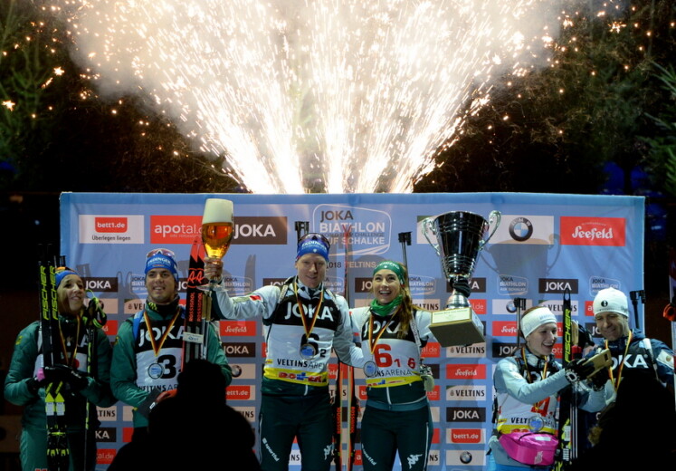 Atemberaubende Stimmung bei der 17. Auflage der Biathlon World Team Challenge auf Schalke, dem Biathlon-Spektakel zwischen den Jahren. Über 46.000 Zuschauer erlebten Biathlon hautnah mit großen Momenten und den knappen Sieg von Dorothea Wierer und Lukas Hofer vor Franziska Preuß und Simon Schempp.