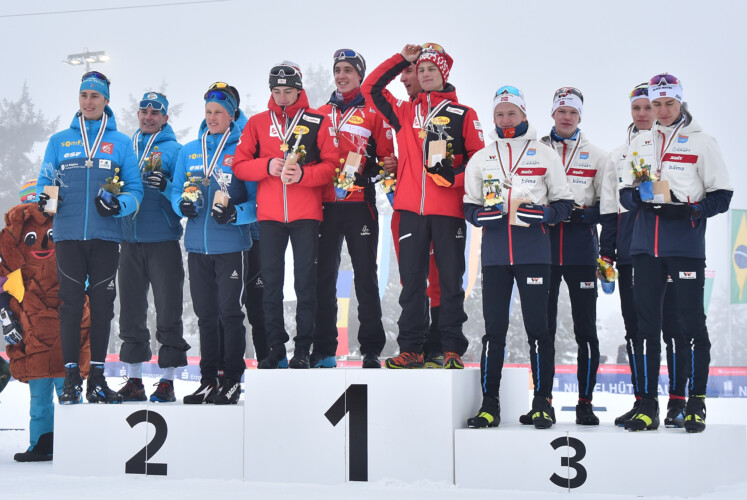 Die Österreicher haben sich beim abschließenden Teamwettbewerb der Nordischen Kombinationbei der Junioren-Weltmeisterschaft in Oberwiesenthal die Goldmedaille gesichert. Zweite wurden die Franzosen vor Norwegen. Deutschland schrammte als Vierter knapp am Podest vorbei.