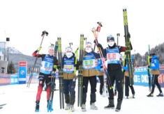 Sebastian Samuelsson setzt sich im entscheidenden Schießen gegen Johannes Thingnes Boe durch und führt die schwedische Staffel zum Sieg. Norwegen wird Zweiter und Philipp Horn führt das Deutsche Team auf Rang drei…