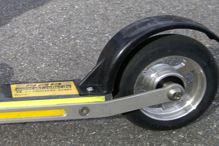 Auf der Skirollerstrecke im Hohenzollern Skistadion am Arber haben wir die neue Rolle dann mit der bekannten 6er Marwe-Rolle verglichen. Bereits auf den ersten Metern, aber vor allem nach der ersten Abfahrt wird klar, dass beide Rollen eine nahezu identische Geschwindigkeit aufweisen. Im Anstieg kann man dann einen kleinen, aber feinen Unterschied ausmachen. Die SRB Rolle hat etwas mehr Gripp und damit eine bessere Haftung beim seitlichen Abstoß. Das vom Hersteller gewollte bessere Einschubverhalten ermöglicht ein spürbar besseres Laufgefühl im Vergleich zum SRB-Vorgängermodell. Alle anderen Eigenschaften des Skirollers werden hauptsächlich vom Holm beeinflusst. Deswegen haben wir diese hier ausgeklammert.