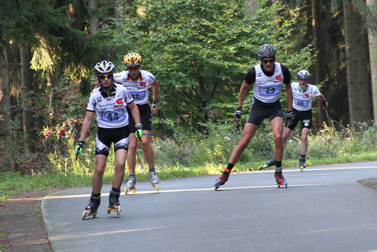Bei den Männern war nach fünf Rennen noch nichts klar. Der Abstand zwischen Platz eins und neun betrug gerade mal 13 Punkte und so konnte es hier noch zu einigen Verschiebungen kommen. Leider trat der bis dahin Führende Martin Gillessen (TuWi Adenau) wegen Krankheit nicht an. Jürgen Treude (SV Lützel), Maximilian Bemman (SV Liebertwolkwitz) und Philipp Heeg (SC Stadthagen) kämpften um eine bessere Platzierung. Jürgen Treude dominierte das Rennen klar und lag schnell vor Maximilian Bemmann. Spannend war allerdings der Kampf um die schnellste Streckenzeit über 27 Kilometer. Die Mitglieder des DSV Rollski Teams lieferten sich hier einen internen Wettkampf. Nach der ersten Runde lag Jürgen Treude 15 Sekunden hinter Junior Christian Schmidt (SV Liebertwolkwitz). Der Abstand verdoppelte sich bis zur Halbzeit und änderte sich dann kaum mehr. Einen hatten die Beiden allerdings nicht auf ihrer Rechnung. Heinrich Hau (SC Lanzenhain) schob sich langsam aber sicher dazwischen und war am Ende nur noch 14 Sekunden langsamer als Christian Schmidt, aber 21 Sekunden schneller als Jürgen Treude. Bei den Junioren siegte damit Christian Schmidt (SV Liebertwolkwitz) mit der Streckenbestzeit von 45:48 Sekunden über 27 Kilometer und holte sich auch den Sieg in der Tour Wertung. Bei den Herren allgemein wurde Jürgen Treude Toursieger vor Maximilian Bemman und Martin Gillessen. Heinrich Hau gewann seine Altersklasse A 4 mit der Maximalpunktzahl.