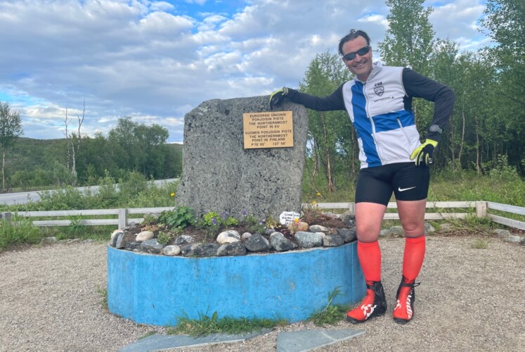 Am Samstagabend hat Teemu Virtanen den nördlichsten Punkt Finnlands, Nuorgam, etwa 40 Kilometer vom nördlichsten Dorf Utsjoki entfernt, erreicht. Zehn Tage lang ist Virtanen 1.600 Kilometer (1.000 Meilen) vom südlichsten Punkt Finnlands, Hanko, zum Nördlichsten gelaufen, auf Skirollern!