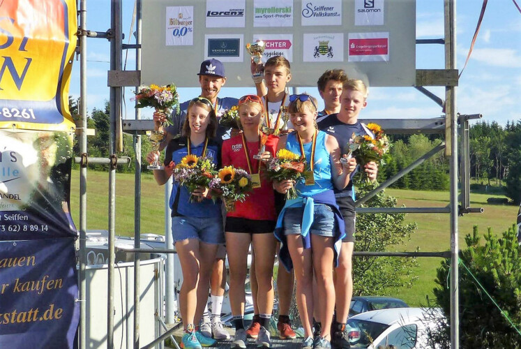 Bei bester Organisation durch das Team der Sportwelt Preußler konnten die Wettkämpfe bei perfektem Wetter ausgerichtet werden. Die Strecke führte wie die Vorjahre von Deutschkatharinenberg über Seiffen Richtung Deutschneudorf. 10,9 Kilometer standen für die Herren und Junioren auf dem Plan. Schon früh versuchten einige Athleten das Feld durch Attacken in kleine Grüppchen zu teilen. Der Garmisch-Partenkirchener Max Olex konnte sich bereits ab der Hälfte der Strecke, am Kirchberg in Seiffen, von seinen Verfolgern absetzen. Sein Skimarathon-Teamkollege vom Adidas XCS Team Toni Escher (SC Norweger Annaberg) setzte sich ebenfalls vom Hauptfeld ab, konnte die Lücke zu Olex jedoch nicht schließen. Im Ziel blieb die Zeit für den Sieger bei 23:52 Minuten stehen. Toni Escher überquerte 21 Sekunden später die Ziellinie. Überraschender Dritter wurde der erst 17-jährige Darius Lodl (SV Hermsdorf), welcher sich in die Juniorenklasse hochgemeldet hatte, um die lange Strecke laufen zu dürfen und einen Rückstand von einer Minute auf den Streckenschnellsten aufwies. Knapp hinter Lodl erreichte Moritz Waidelich (SC Enzklösterle) als dritter Herr das Ziel. Vizemeister der Junioren wurde Christoph Noack und dritter Nico Klem, beide starten für die Sportschule in Altenberg. Auf der sechs Kilometer Strecke gingen Jugend m + w, Damen und Master an den Start. Nachdem das Feld der Männer vorbeigelaufen war, fiel der Startschuss bei sonnigen 25 Grad. Auch hier konnte die Favoritin ihrer Rolle gerecht werden. Anna-Maria Dietze (Pulsschlag Neuhausen) kam als Streckenschnellste nach 15:32 Minuten im Ziel an. Ihre direkten Verfolgerinnen Anna Rockstroh (SV Trebsen) und Merle Richter (SSV Sayda) konnten dem hohen Tempo nicht folgen und kamen 39 beziehungsweise 44 Sekunden nach Dietze ins Ziel. Der Jugendläufer Erik Kupfer aus Trebsen konnte bei den Jugendläuferinnen gut mithalten und holte sich den Titel des Deutschen Jugendmeisters vor Tobias Albrecht (TSG Schkeuditz) und Robin Kramer (Hohburger SV). Für Tina Willert aus Lützel blieb als Gesamtvierte und schnellste Dame die Zeit bei 16:40 Minuten stehen. Zweite Dame wurde Ulla Hornfeck (TSV Carlsgrün) in 18:12 Minuten vor Cindy Kolbe (SV Trebsen). In die Hatz um den Titel des Schülermeisters und der Schülermeisterin gingen 46 Athleten über eine Distanz von drei Kilometern. Den Titel des Deutschen Schülermeisters konnte Paul Schwär vom WSV Oberhof in 7:06 Minuten für sich behaupten, Vizemeister wurde Kilian Kober (SV Grünbach) und das Podium komplettierte Tom Dreissig (ESV Nassau). Bei den Schülerinnen konnte Alexandra Dietze vom Pulsschlag Neuhausen es ihrer Schwester gleichtun. Sie siegte mit 16 Sekunden Vorsprung in einer Zeit von 8:34 Minuten vor Lilly Marie Lange von der SG Klotzsche. Platz Drei ging ebenfalls nach Klotzsche, an Jacobine Behrisch.