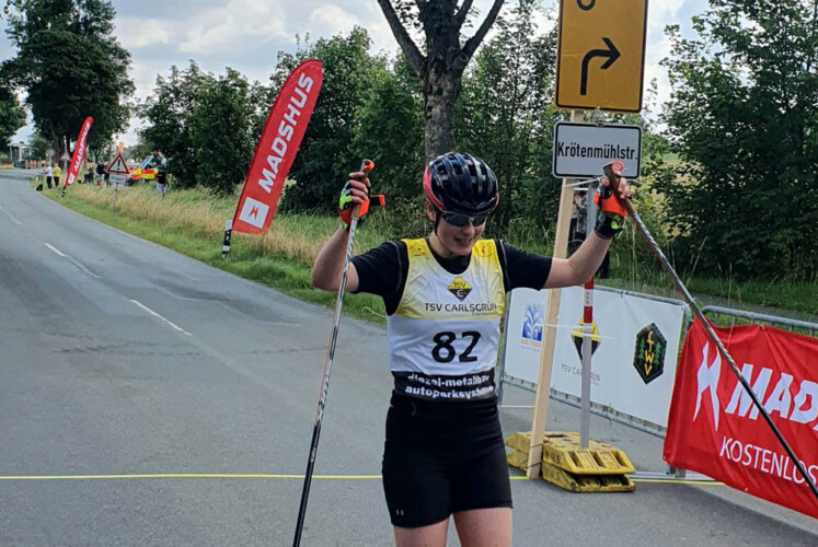 Bereits zum sechsten Mal fand der Rollski Run des TSV Carlsgrün statt und auch in diesem Jahr war das Rennen über die Marathondistanz wieder Teil der DSV Marathon Serie und bildete hier die zweite von vier Stationen. Aufgrund einer Baustelle musste der rund zwei Kilometer lange Startberg in diesem Jahr ausgelassen werden. Daher wurde die leicht wellige und rund vier Kilometer lange Runde heuer zehnmal gelaufen. Ein schneller Start sorgte mit der Bildung vieler kleinerer Gruppen bereits für kleine Vorentscheidungen. Mit ein paar Sekunden Vorsprung bildeten Tobias Hartig (Bruse Sauerland Skiteam) und Jonathan Göppert (xc-ski.de A|N Skimarathon Team) das Spitzenduo vor einer Dreiergruppe um Christoph Friedl und Tobias Dargatz, ebenfalls beide vom xc-ski.de A|N Skimarathon Team, sowie Peter Riedl (Ski-Willy Marathon Team Austria). Im Windschatten der Herren konnte sich außerdem Rosa Zimare (SG Klotzsche) an die Spitze der Damenwertung setzen. Im weiteren Verlauf des Rennens verkleinerten sich die Gruppen nach und nach, während die Abstände größer wurden. Die Entscheidung um den Tagessieg bei den Herren fiel mit einer Attacke von Jonathan Göppert zu Beginn der vorletzten Runde. Mit einem Vorsprung von etwas mehr als eineinhalb Minuten lief er nach 42 Kilometern als Sieger über die Ziellinie, dahinter verteidigte Tobias Hartig seinen zweiten Platz. Christoph Friedl wurde Dritter. Peter Riedl konnte nach Problemen mit den Rollski nicht folgen und lief auf Platz Vier vor Tobias Dargatz. Rosa Zimare verteidigte souverän die Führung im Damenrennen und siegte mit 1:47 Minuten Vorsprung vor Maren König (WSV Bad Lobenstein) und Luisa Grießbaum (Ski-Willy Marathon Team Austria) auf dem dritten Rang. Den Tagessieg beim Fun-Run über 17 Kilometer holten sich die Nachwuchsläufer Niklas Blaschke sowie Lilly Rank. Die beiden Vorjahressieger Jonathan Göppert und Rosa Zimare liegen nun durch die erneuten Erfolgen in Carlsgrün zur Halbzeit der DSV Marathon Serie in Führung.