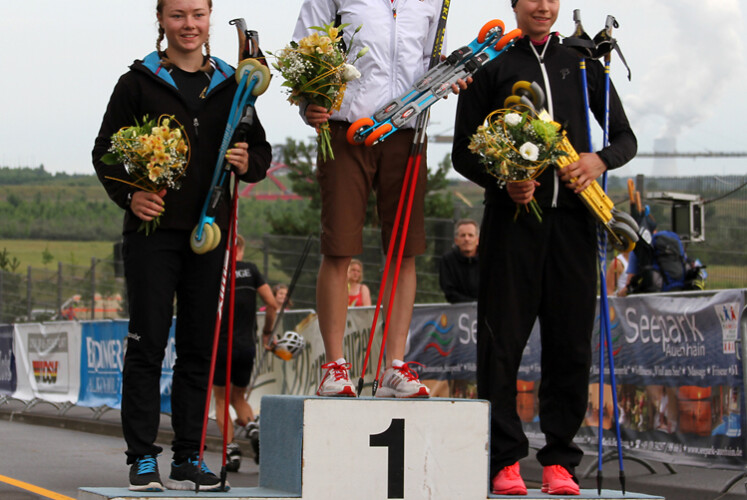 Das Deutsche Rollski Team wurde von 7 Juniorinnen und 3 Junioren aus der Trainingsgruppe Oberwiesenthal von Lutz Hänel und Markus Hofmann verstärkt. Bekannteste Starterin war Julia Belger, die im Winter bei der ersten Jugend Olympiade mit Platz 5 auf sich aufmerksam machte. Die jungen Sportlerinnen fuhren erstmals mit den schnellen Rollski in einem Wettkampf, die von SIRIRO und der Sportwelt Preussler zur Verfügung gestellt wurden. Der Ausflug in die Rollskiszene hat sich für die Starterinnen gelohnt. Trotz der nassen Bedingungen ab der zweiten Hälfte des Rennens kamen die Sportlerinnen sehr gut mit der Strecke zurecht. Julia Belger, Theresa Lützendorf, Anne Winkler, Katharina Henning, Jessica Gnüchtel belegte die Plätze 1 bis 5. Die Weltcupführende Lisa Bolzan (ITA) musste sich mit Platz 6 begnügen. Anneka Döhle und Nadine Hermann folgten auf den Plätzen 8 und 9. Lydia Sabaditsch (SV Liebertwolkwitz) wurde als erste reine Rollskiläuferin Elfte. Damit war der erste Fünffach Triumph der Deutschen Juniorinnen komplett.