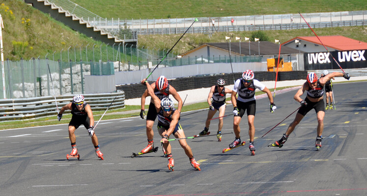 Das rollende Wochende fand am Sonntag auf dem Salzburgring seine Fortsetzung. Auf den 4,2 Kilometern der Autorennstrecke waren Highspeed Duelle vorprogrammiert. Den Auftakt zu den Langlaufbewerben machten die Starter der Schülerklassen. Da diese am Samstag keinen Berglauf absolvierten, wurden die Rennen über eine Ringrunde im Massenstart und auf standardisierten Rollern absolviert. Die Neuerung für alle älteren Athleten dieses Jahr war, dass die Ergebnisse aus dem Berglauf in einen Verfolgungswettkampf übernommen wurden. Um die Attraktivität zu erhöhen, wurden die Rückstände vom Samstag halbiert. So kam es zu super Duellen um die Plätze. Julian Edlinger und Julia Pfennich konnten dabei die Siege in der Jugendklasse einheimsen. Beim Hauptbewerb der Damen machten sich Veronika Mayerhofer und die slowakische Biathletin Jana Gerekova auf die Jagd nach Katerina Smutna. Da diese geschwächt von einer Baucherkrankung das Rennen vorzeitig beenden musste, war der Weg frei für einen heißen Zweikampf um den Tagessieg. Schlussendlich konnte sich Gerekova knapp durchsetzen. Rang drei ging an Kerstin Muschet.