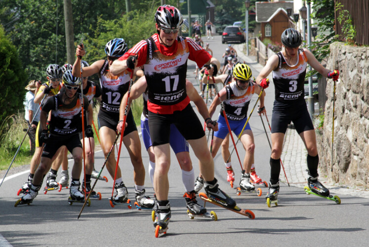 Am Sonntag folgte der 4. Lauf der DSV Rollski Tour bei angenehmeren Temperaturen. Dieses Jahr wurde der klassische Berglauf nicht in der Tschechei ausgetragen, sondern er verlief durch den Ort. Heftig hatten es die Schüler erwischt, sie mussten zwar nur 1,7 km laufen, sie hatten aber das steilste Stück der Strecke zu absolvieren. Bei den Herren holte sich wie schon am Vortag Kevin Zemmrich den Sieg in 25:45 min vor Lars Lehmann (Pulsschlag Neuhausen) und Michael Henning (SC Lanzenhain). Für den Gesamtsieg an beiden Tagen hat es aber für Kevin Zemmrich nicht gereicht, weil Heinrich Hau Sonntag lediglich 1,1 sec langsamer war. Damit holte sich Heinrich Hau den Gesamtsieg und gewann einen hölzernen Rollski. Bei den Damen/Juniorinnen wurde Sabine Wallner sowohl Tagessiegerin als auch Gesamtsiegerin. Die Juniorin Tina Willert holte sich erneut den Tagessieg vor Laura Heinz mit lediglich 3,4 sec. Vorsprung und Lydia Sabaditsch. Stephan Strübel zeigte sich nach dem Hitze bedingten Einbruch am Vortag gut erholt und siegte mit 26:04 min klar bei den Junioren. Platz zwei ging an Philipp Ficker und Platz drei an Christian Schmidt.