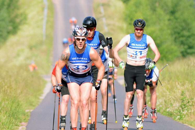 Bereits im vergangenen Jahr waren die Teilnehmer mit der Streckenführung des Moorgrund Skiroller Marathons sehr zufrieden. Die Runde über Orts- und Verbindungsstraßen hatte alles zu bieten, was das Klassiker-Herz begehrt. Das genügte den Organisatoren der TSG Ruhla um Klaus Baacke jedoch nicht und so wurde die Rennstrecke für die diesjährige Austragung auf insgesamt 9,5 Kilometer verlängert. Zudem verlegte man den Start auf den neuen und breiteren Abschnitt, was für deutlich weniger Stress nach dem Startschuss sorgte. Nach einer verkürzten Startrunde absolvierten die Teilnehmer der Langdistanz vier volle Runden, um am Ende 42 Kilometer auf dem Konto zu haben. Eine Runde weniger legten die Damen und Junioren zurück, für die Jugendläufer galt es sogar nur zwei Runden zu absolvieren. Wer sich nicht an die längere Distanz wagte, hatte die Chance, sich im Jedermann-Rennen über 13,5 Kilometer zu messen und die Schüler liefen vier Kilometer vom Start bis ins Ziel in Gumpelstadt.
