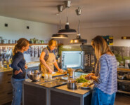 Dieses Gespräch hatte beim Mittagessen stattgefunden. Das ist an sich noch nichts Besonderes. Wenn es aber von den beiden Köchen Waltraud und Matthias täglich aus frischen regionalen Zutaten in der firmeneigenen Küche gekocht wird, dann ist das durchaus erwähnenswert. An den vier großen Tischen im Eingangsbereich des Firmensitzes trifft man sich zum gemeinsamen Essen und Austausch. Sicherlich einer der Punkte, warum so viele Mitarbeiter seit Jahren Maloja treu bleiben. Deutlich wichtiger dürfte aber der anständige Umgang und die Rücksicht auf die individuellen Bedürfnisse der einzelnen sein. Projektarbeit und flexible Arbeitszeiten ermöglichen den jungen Müttern im Team den Wiedereinstieg auf Teilzeitbasis.
