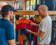 Räuber war es übrigens auch, der zusammen mit Designerin Franzi die Idee zu einer ganz speziellen Produktlinie hatte: Glide & Ride. Die beiden stellten im gemeinsamen Gespräch nach einem sonnigen Frühlingswochenende fest, dass sie sowohl beim Langlaufen am Vormittag als auch beim Biken am Nachmittag dieselbe funktionale Bekleidung angehabt hatten. Die Kombination aus Glide (=Langlaufen) und Ride(=Mountainbiken) war geboren. Und auch das ist ein Beitrag zur Nachhaltigkeit, bedeutet doch diese Kombination neben dem Einsparpotential für den Kunden weniger Verbrauch an Ressourcen für das Unternehmen.