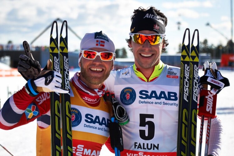 Alex Harvey hat sich im Skiathlon über 15+15 Kilometer in Falun seinen zweiten Saisonsieg geholt. Im Zielsprint bezwang er den Gesamtweltcupsieger Martin Johnsrud Sundby und Alexander Legkov und geht am Sonntag mit 26 Sekunden Vorsprung auf das Duo auf die Strecke.