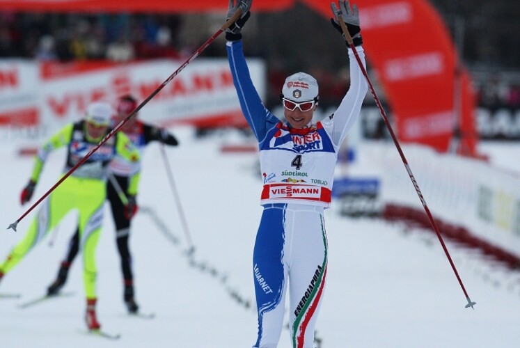 In einem erwarteten Vierkampf hatte Arianna Follis auf dem Schlussstück im 16 Kilometer langen Handicaprennen noch am meisten zuzusetzen. Die Aoastatalerin sprintete Petra Majdic und Justyna Kowalczyk nieder und übernahm somit die Gesamtführung.