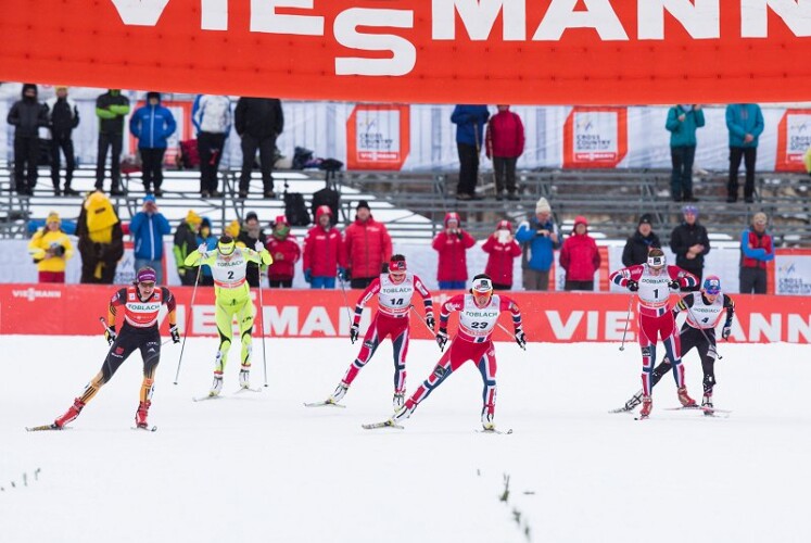 Einen Weltcupsprint ohne Denise Herrmann im Finale? Das kann man sich in dieser Saison gar nicht mehr vorstellen. Die Oberwiesenthalerin schaffte es in jedem Rennen unter die besten Sechs, bis auf zweimal sogar immer auf das Podium. Die Deutsche ist die einzige Sportlerin, die in diesem Winter immer im Finale dabei war. So trägt sie auch verdientermaßen das rote Trikot der Sprintbesten und konnte diese Position mit dem heutigen zweiten Platz weiter festigen. Wegen der Streckenbeschaffenheit konnten sich die Favoriten bei Damen und Herren in allen Heats auf der ersten Runde zurückhalten und erst später aus dem Windschatten attackieren. So machten es auch Marit Bjørgen und Denise Herrmann, die sich sowohl im Halbfinale als auch im Finale ab dem Anstieg über das Funktionsgebäude gemeinsam vorarbeiteten. Während die Norwegerin im Finale vor Kikkan Randall die Führung übernahm, wurde Herrmann am letzten Anstieg wieder etwas nach hinten durchgereicht. Mit einem tollen Ski kam sie in der Abfahrt wieder hinter Bjørgen nach vorn, während Randall in der Kurve vor der Zielgeraden eingeklemmt wurde und sie das Tempo rausnehmen musste. „Ich bin am Start nicht ganz so gut weggekommen, darum war ich erstmal hinten positioniert. Ich habe versucht, ruhig zu bleiben und es taktisch so zu gestalten wie die Läufer davor. Das ist auch ganz gut aufgegangen. Über das Haus drüber konnte ich auf der Außenspur ganz gut durchziehen. Ich hatte Wahnsinnsmaterial unter den Füßen und bin dann wieder ran und vorbeigeflogen“, strahlte die Deutsche. Im Zielsprint konnte Denise Herrmann die Doppelsiegerin von Toblach nicht mehr ganz abfangen, jubelte jedoch über ihren erneuten zweiten Platz. „Heute habe ich mich sehr langsam gefühlt, dann ging es immer besser und besser. Am Anstieg habe ich dann immer Gas gegeben“, meinte Marit Bjørgen, die sich selbst nicht ganz erklären konnte, warum sie zu Beginn aller Heats nicht richtig in die Gänge kam. Ingvild Flugstad Østberg konnte sich über den dritten Platz freuen vor ihrer Teamkollegin Maiken Caspersen Falla. Kikkan Randall fiel durch ihre Probleme in der letzten Kurve bis auf den fünften Platz vor Katja Visnar zurück.