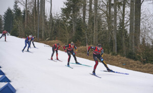 Etwas komplexer war die Regelung zur Zusammensetzung der Mixed-Staffeln, die nach dem Rennen der Damen auf die Strecke gingen. Position eins musste eine Dame übernehmen und 2,5 Kilometer absolvieren. Auf Position zwei war es den Teams freigestellt, eine Frau oder einen Mann einzusetzen, es mussten aber fünf Kilometer, also zwei Runden gelaufen werden. Den Abschluss bildete dann ein Mann, der die Staffel über die letzten fünf Kilometer ins Ziel brachte. Dabei ließ der WSV Oberhof 05 keinen Zweifel an seiner Favoritenstellung. Lisa Lohmann übergab in einer dreiköpfigen Spitzengruppe an Lucas Fratzscher und der wiederum an Simon Kaiser. Die beiden Biathleten liefen schließlich in ihrer bevorzugten Stilart knapp 1:40 Minuten Vorsprung auf die Zweitplatzierten vom SC Pfronten heraus. Lena Einsiedler, Matthias Vogler und Ole Händel konnten sich wiederum mit knapp 15 Sekunden Vorsprung gegen den SC Partenkirchen durchsetzen, der in der Besetzung Luisa Dahlke, Xaver Pongratz und Paulus Heiland Bronze gewann.