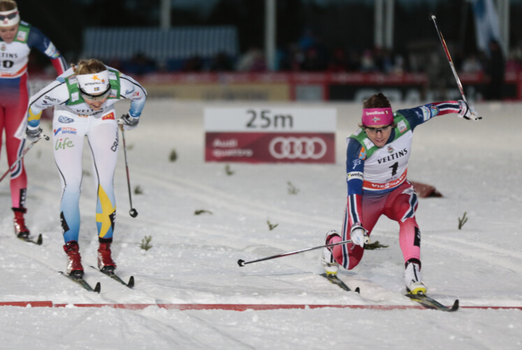 Für Denise Herrmann als beste Deutsche war im Halbfinale Endstation. Zuvor hatte sie sich im Viertelfinale erstklassig geschlagen, war das Rennen forsch angegangen und hatte sich souverän durchgesetzt. Im Halbfinale konnte sie diese Taktik nicht realisieren, die starken Norwegerinnen Ingvild Flugstad Østberg und Maiken Caspersen Falla schlugen ein zu schnelles Tempo an. „Im Halbfinale bin ich ein bissel defensiv angegangen, aber die Namen der Gegnerschaft war natürlich auch eine Kategorie höher wie im Viertelfinale. Dass das ein schneller Lauf wird, war eigentlich schon vom Zettel her zu erkennen. Ich hatte natürlich auch Schnelle am Start neben mir, da wird dann die Spurwahl nach 30 Metern erstmal eng und ich musste etwas zurückstecken“, meinte Denise. „Ich bin erstmal froh, dass es so ging für den Einstieg, es muss natürlich noch besser gehen…..“