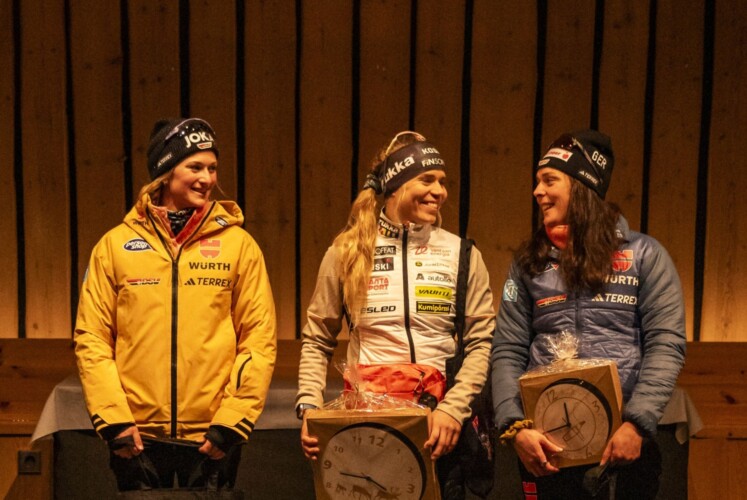 Laura Gimmler war im Prolog mit drei Sekunden Vorsprung klar die Stärkste, im Halbfinale traf sie aber erstmals auf die Finnin Jasmi Joensuu, gegen die sie knapp unterlag wie auch im Finale. Somit ging der Sieg an die Finnin, die 23 Hundertstelsekunden schneller war als die Allgäuerin. Joensuu hatte von Beginn an Druck gemacht und sich zwischenzeitlich deutlich abgesetzt. Zum Ziel hin lief Laura Gimmler wieder heran, kam aber nicht mehr vorbei. Coletta Rydzek, die Zweitschnellste in der Qualifikation, überzeugte ebenfalls in allen Läufen und wurde Dritte im Finale vor Amanda Saari aus Finnland und der dritten Deutschen Sofie Krehl. Nicole Monsorno komplettierte als beste Italienerin das Finale. Lisa Lohmann und Katherine Sauerbrey belegten nach ihrem Halbfinal-Aus die Plätze sieben und neun vor der Österreicherin Magdalena Scherz, die gute Zehnte wurde. Die sechste DSV-Starterin Lena Keck schied als Dritte ihres Viertelfinals aus. Die Schweizerin Bianca Buholzer war schon im Prolog gescheitert.