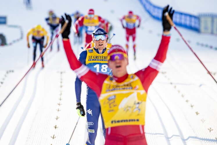 Ilia Semikov und Ivan Yakimushkin belegten die Plätze vier und fünf vor einem ganz starken Janosch Brugger, der sich im Zielsprint um Platz fünf geschlagen geben musste. Nach seinem Weltcupsieg beim Lillehammer Triple 2018 durch die schnellste Laufzeit im Handicaprennen bedeutet dieses Ergebnis das beste Weltcup Resultat für den 23-Jährigen, der sich auf Klassikski deutlich wohler fühlt als im Skaten. Nach dem Verfolgungsrennen vor zwei Tagen, in dem er zu schnell anging, konnte er ich seine Kräfte diesmal besser einteilen und das Beste aus sich herausholen. „Das ist so unfassbar schnell da vorne drin! Heute war das ein Gemetzel, da musst du schauen, dass du clever da durch kommst und heute hat relativ viel zusammengepasst. Auf der Zielgeraden war over and out, da weiß ich auch nichts mehr. Da war ich komplett drüber, 100 Meter weiter und ich wäre gefühlt zusammengeklappt. Aber das kommt, ich bin noch jung. Da kann ich noch viel draufpacken“, meinte er zuversichtlich. Andrey Melnichenko wurde als fünftbester Russe Siebter vor dem talentierten Amerikaner Gus Schumacher, Platz acht bedeutete das erste Top10 Ergebnis in der Weltcup Karriere des 20-jährigen dreifachen Junioren-Weltmeisters. Der 25-jährige Thomas Maloney Westgård, Sohn einer Irin und eines Norwegers, lief erstmals für Irland unter die besten Zehn. Als Zehntplatzierter im heutigen Massenstart verbesserte ich Maurice Manificat auf Platz zwei in der Tour de Ski, 2:37 Minuten hinter Bolshunov und zehn beziehungsweise 13 Sekunden vor Yakimushkin und Spitsov.