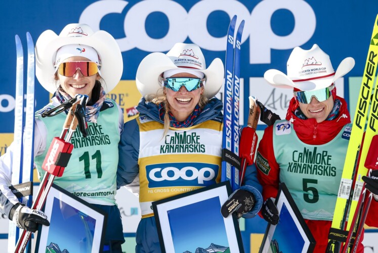 Linn Svahn gewann den Sprint der zweiten Gruppe. Dann überquerte aber schon Katharina Hennig als sehr gute Zehnte die Ziellinie, nachdem sie den Sprint knapp gegen Frida Karlsson gewonnen hatte. „Ich bin sehr sehr glücklich über meinen zehnten Platz heute und freue mich, dass ich die gute Skatingleistung aus Goms bestätigen konnte. Ich habe nun mein zweites sehr gutes Skatingergebnis dieses Jahr eingefahren, nachdem es ja in dieser Technik etwas holprig losging dieses Jahr“, sagte Katharina Hennig. „Die Strecke war extrem hart, es war eine Berglaufstrecke. Es ging erst alles hoch und dann alles wieder runter. Man hat es ja auch an den Platzierungen weiter vorn gesehen, dass das eine sehr berglastige Strecke ist und darum bin ich sehr stolz, heute ein so gutes Ergebnis eingefahren zu haben. Die letzten Tage waren hier etwas zäh, man hat gemerkt, dass der Körper eine Weile braucht, um sich an die neue Zeitzone zu gewöhnen und deswegen hatte ich nicht allzu große Erwartungen von den Rennen heute und darum bin ich froh, dass es so gut gegangen ist.“ Victoria Carl, der die schweren, langen Anstiege bei ihrer Größe nicht entgegen kamen, verlor in der dritten Runde zusammen mit der Teamkollegin den Anschluss, kam durch die Abfahrt wieder heran und konnten in den Anstiegen der letzten Runde wieder nicht mit den Besten mithalten. Dafür gibt es jedoch Gründe: Bei Hennig die Skatingtechnik, in der sie in diesem Winter noch nicht viele gute Rennen gemacht hat, bei Carl wie gesagt das Streckenprofil, das ihr bei ihrem Körperbau nicht liegt. Außerdem litt sie in Canmore unter Magenproblemen. Wie sie selbst sagte, war das der Grund, warum sie in der dritten Runde nicht mehr mitgehen konnte: „Das Rennen war an sich völlig in Ordnung. Ich hatte ein bisschen Probleme mit Sodbrennen und Magenproblemen zu kämpfen, vor allem in der dritten Runde hat es mich da relativ stark ausgehebelt. Da habe ich kurzzeitig gedacht, ich komme nicht mehr an. Das hat sich dann aber im Laufe der vierten Runde wieder gegeben und konnte dann nochmal in der vierten Runde angreifen und noch mal ein paar Plätze gutmachen. Das stimmt mich sehr positiv für die nächsten Tage.“ Insofern können beide mit Platz zehn und zwölf sehr zufrieden sein wie auch Lisa Lohmann, die als 20. ebenfalls ein gutes Rennen machte, auch wenn sie fast zwei Minuten verlor. Rang 24 ging an Katherine Sauerbrey. Zudem waren auf den Rängen 38 und 39 mit Lena Keck und Anna-Maria Dietze noch zwei unerfahrene Athletinnen dabei, für die in den USA studierende Dietze war es sogar das Weltcupdebüt. „Wir sind natürlich mit hohen Erwartungen reingegangen, die teilweise erfüllt wurden, teilweise nicht so ganz. Katharina Hennig kann mit ihrem zehnten Platz im Skating sehr zufrieden sein. Vici Carl mit ihrem zwölften Platz wird nicht ganz zufrieden sein, hat ein bisschen Magenprobleme gehabt und das ist natürlich auf so einer schweren Strecke ein entscheidender Nachteil, den man hier erleidet“, sagte Teamchef Peter Schlickenrieder. „Vom Mannschaftergebnis können wir sehr zufrieden sein. Alle sechs Gestarteten unter den Top40 und Lisa Lohmann hat mit ihrem 20. Platz wieder ein sehr gutes Skatingrennen gemacht. Der Damen Auftakt ist gelungen – mit Luft nach oben, gerade für unsere aktuell beste Läuferin, die Vici, die hier sicher mit einem Top8 Platz geliebäugelt hat.“ Die einzige Schweizerin Nadine Fähndrich verlor als 27. fast drei Minuten. Lotta Udnes Weng gab das Rennen nach zwei Runden mit Tränen in den Augen auf. Seit Toblach musste sie wegen Atemwegsinfekten pausieren und wollte nun ein Comeback feiern. Im Rennen merkte sie aber, dass es noch nicht geht: „Schon nach zehn Metern musste ich kämpfen und das ist kein gutes Gefühl.“