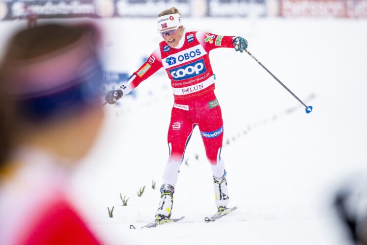 Am Morgen machte die Nachricht die Runde, dass zwei Athletinnen heute nicht am Start stehen können: Sophie Caldwell verletzte sich gestern bei ihrem „Pinguin-Flug“, wie sie es selbst auf (Instagram) nannte, und Natalia Nepryaeva musste sich wegen Krankheit abmelden und konnte zumindest heute nicht um den Gesamtweltcup kämpfen. Ob sie für das abschließende Weltcupfinale reise- und wettkampffähig sein wird, bleibt abzuwarten. Die Bedingungen waren auch heute sehr schwierig, zum Sulz von gestern in den Abfahrten gesellte sich nun Neuschnee, der die gesamte Strecke sehr tief machte. Wie meistens in diesem Winter entschied sich Topfavoritin Therese Johaug für eine frühe Nummer innerhalb der roten Gruppe, um wieder die Zeit vorzulegen, die die anderen zu schlagen haben. Wie schon in den letzten Wochen fällt ihr Vorsprung auf die Zweitplatzierte aber nicht mehr so riesig aus wie in der ersten Saisonhälfte. Nach der ersten 5 Kilometer-Runde mit dem anstrengenden Mördarbakken führte Johaug 13 Sekunden vor Ebba Andersson und Heidi Weng, die überraschend stark unterwegs war. Im Anstieg der zweiten Runde konnte die Norwegerin ihren Vorsprung auf die Schwedin noch um fünf Sekunden ausdehnen, die mit dem zweiten Platz aber überglücklich war. „Das war heute sehr schwer zu laufen. Ich habe mich unterwegs gar nicht so gut gefühlt, abver das ging ja jedem so. Die Bedingungen waren sehr schwierig mit dem tiefen Schnee“, so Johaug. Um den dritten Platz entwickelte sich ein spannendes Duell, auch wenn Heidi Weng nicht mehr mit von der Partie war. Die Norwegerin verlor auf den letzten Kilometern noch viel Zeit, wurde aber dennoch gute Fünfte. Lange Zeit war Ingvild Flugstad Østberg auf dem Weg zum Podestplatz, um wichtige 60 Weltcuppunkte zu holen und damit ihren Vorsprung auf Nepryaeva auf über 100 Punkte auszubauen. Aber Jessie Diggins kämpfte bis zum letzten Meter, holte einige Sekunden auf und lag im Ziel 0,5 Sekunden vor der Norwegerin, die damit nun 97 Punkte Vorsprung auf die Russin hat. Krista Pärmäkoski erreichte ein Ergebnis wie so oft in dieser Saison: Die Finnin wurde Sechste vor Nathalie von Siebenthal. Rang acht ging an Yulia Belorukova , dicht gefolgt von Sprinterin Maja Dahlqvist. Knapp vor Charlotte Kalla belegte Cogne-Siegerin Kerttu Niskanen den zehnten Platz, nachdem sie vor dem Start noch sagte, sie habe nach ihrem Übertraining zu 95% klassisch trainiert und sich offenbar selbst nicht viel ausrechnete.