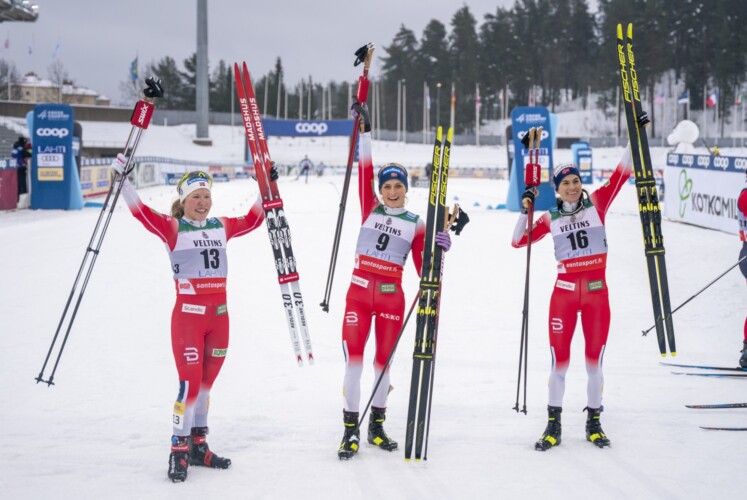Die Norwegerinnen sind mit sehr guter Form in den Weltcup zurückgekehrt und haben sich beim Langlauf Weltcup in Lahti die ersten drei Plätze im Skiathlon über 2×7,5 Kilometer gesichert. Therese Johaug dominierte das Rennen, Helene Marie Fossesholm wurde Zweite und Heidi Weng gewann den Zielsprint um Platz drei. Teresa Stadlober wurde gute Achte, Katharina Hennig wurde 13. Die anderen beiden DSV Athletinnen wurden von einem Massensturz zurückgeworfen.