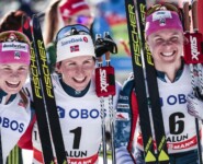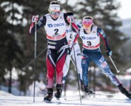 Mit 36 Sekunden Vorsprung war Marit Bjørgen auf die zehn Kilometer lange Schlussetappe im freien Stil gegangen und hinter ihr hatte sich sofort eine dreiköpfige Verfolgergruppe unter der Führung von Jessie Diggins mit Ingvild Flugstad Østberg und Krista Pärmäkoski gebildet. Obwohl zumindest die Amerikanerin und die Norwegerin zusammenarbeiteten, wurde der Abstand auf Bjørgen größer und auch die nächste Vierergruppe mit Kalla, Bjornsen, Jacobsen und Sundling war nicht allzu weit entfernt. Jessica Diggins wirkte wieder deutlich frischer als im gestrigen Klassik-Massenstart und hielt sich nicht lange in der Gruppe auf, als ihr das Tempo zu langsam wurde. Allein machte sie sich auf die Verfolgung von Bjørgen und machte Boden gut. Zur Hälfte des Rennens lag der Abstand nur noch bei 27 Sekunden, während Østberg und Pärmäkoski nun von der Gruppe geschluckt wurden und sich alles auf den Kampf um Platz drei konzentrierte. Vorne schmolz der Abstand zwischen Bjørgen und Diggins bis auf 15 Sekunden nach einer tollen Aufholjagd, aber der Sieg im Weltcupfinale ging an Marit Bjørgen. „Jessie hat hinten Tempo gemacht, es war ein hartes Rennen. Ich habe mich an den Anstiegen sehr gut gefühlt, aber sie war deutlich besser. Ich hörte, dass sie schnell näher kommt und habe gehofft, dass es reicht“, meinte die Norwegerin. Jessie Diggins jubelte über den zweiten Platz und als die Gruppe ins Ziel kam, wurde der Jubel im US-Team noch größer: Sadie Bjornsen ersprintete sich Platz drei. Im Anstieg hatte sich die Amerikanerin zusammen mit den Norwegerinnen Ragnhild Haga und Astrid Uhrenholdt Jacobsen abgesetzt: Jacobsen führte das Trio die Abfahrt hinunter und auf die Zielgerade, wo Sadie Bjornsen noch die meisten Energien freisetzen konnte. Ragnhild Haga hatte eine tolle Aufholjagd von Platz 17 gezeigt und wurde Vierte vor ihrer Teamkollegin. Rang sechs ging an Krista Pärmäkoski gefolgt von Charlotte Kalla und Ingvild Flugstad Østberg. Jonna Sundling wurde sehr gute Neunte noch vor Ebba Andersson.