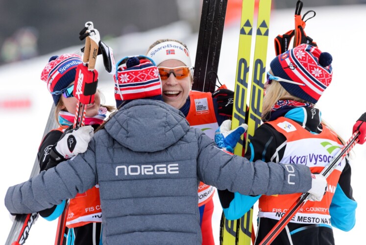 Die norwegischen Damen Ingvild Flugstad Østberg, Heidi Weng, Therese Johaug und Astrid Uhrenholdt Jacobsen haben mit einer souveränen Leistung das Staffelrennen beim Langlauf Weltcup in Nove Mesto gewonnen. Rang zwei ging an die USA vor Finnland. Die DSV-Damen zeigten ein starkes Rennen, Deutschland 1 wurden Vierte, das junge Team von Deutschland 2 Siebte.