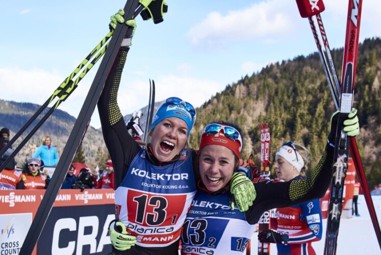 Das Finale im Teamsprint der Damen wurde zu einem Ausscheidungsrennen, bei dem sich die beiden deutschen Duos Ringwald/Kolb (GER1) und Gimmler/Anger (GER2) sehr gut schlugen. Auf der vierten Runde setzten sich vier Teams vorne ab, die Tempoarbeit wurde immer von Norwegen 1 mit Heidi Weng und Astrid Uhrenholdt Jacobsen gemacht. Lucia Anger gehörte leider nicht mehr dazu, sie war nach dem erfolgreichen Halbfinale die erste Deutsche, die Probleme bekam, sie verlor sogar den Anschluss an die Verfolgergruppe. Ähnlich erging es Hanna Kolb in der Spitzengruppe, die dem hohen Tempo Tribut zollen musste und schwer um Anschluss kämpfte. Auf der letzten Runde der Startläuferin (insgesamt Runde fünf) gelang es aber sowohl Sandra Ringwald als auch Laura Gimmler, den Anschluss wieder herzustellen – sowohl Sandra als auch Laura waren die stärkeren Athletinnen in ihrem Team. Vor dem letzten Wechsel verlor auch Sandra Ringwald wieder leicht den Kontakt zu den beiden Führenden, so dass Hanna, die schon vorher angeschlagen war, ihre Schlussrunde allein laufen musste. Dort gelang es ihr aber, die Verfolgerinnen auf Distanz zu halten und den dritten Platz abzusichern, während vorne die Post abging. „Ich habe in meiner letzten Runde vielleicht etwas zu früh attackiert, aber ich wollte die Gruppe sprengen und dann davonlaufen. Wir sind zu dritt weggekommen und deswegen ging der Plan mit der Attacke eigentlich gut auf. Es war eine tolle Zusammenarbeit mit Hanna. Ich freue mich sehr über mein erstes Podium. Im Team macht alles mehr Spaß. Insgesamt sind die deutschen Ergebnisse unglaublich und zeigen die tolle Athmosphäre im Team“, erklärte Sandra und Hanna sagte: „Ich bin sehr erleichtert, weil wir wussten, dass wir heute eine Riesenchance haben und wir die nützen müssen. Es ist genial!“ Stina Nilsson attackierte am letzten Anstieg vor dem Stadion und lief wie tags zuvor dem Sieg entgegen, die Norwegerinnen Weng/Jacobsen belegten den zweiten Platz. „Im Halbfinale haben wir gesehen, dass Norwegen sehr hart gelaufen ist. Wir wussten, dass das keine leichte Angelegenheit wird und wir haben auch gemerkt, dass Deutschland lange dran war. Dann konnten wir aber eine Lücke reißen“, sagte Siegerin Ida Ingemarsdotter und Stina Nilsson fügte hinzu: „Wir hatten einen tollen Tag als Team. Man könnte sagen, wir sind ein tolles Paar. Ida hat tolle Arbeit geleistet. In meiner Schlussrunde war ich in einer guten Position und es lief, wie ich es wollte. Ich bin sehr zufrieden mit dem Wochenende in Planica.“ Rang vier ging an Jonna Sundling und Hanna Falk (SWE2), obwohl auch die junge Sundling sich auf ihrer letzten Runde sehr schwer tat. Knapp dahinter kämpften mit den USA (Sargent/Caldwell), dem zweiten deutschen Team und Norwegen 2 (Eide/Harsem) drei Teams um die Plätze. Nach Auswertung des Zielfotos konnten sich Laura Gimmler und Lucia Anger über einen starken sechsten Platz freuen. Die Schweizerinnen Nadine Fähndrich und Laurien van der Graaff hatten knapp den Einzug ins Finale verpasst.