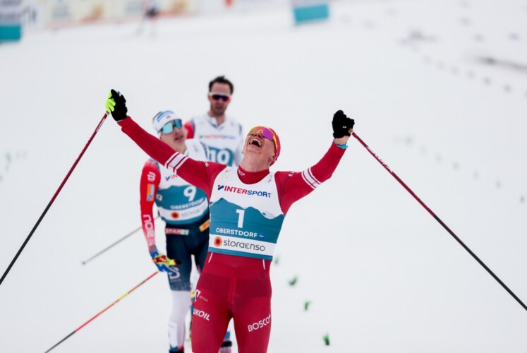 Das Tempo auf den vier Klassikrunden war so gewählt, dass die Spitze komplett zusammenblieb. Dennoch ließen die vier deutschen Starter nach und nach abreißen, was wie schon bei den Damen in erster Linie am Ski lag. „Ich hätte jetzt gedacht, beim Luggi Bögl geht es, aber Flo Notz muss viel neben der Spur laufen. Wir haben sicher nicht den überragendsten Stieg“, sagte Peter Schlickenrieder in einem Zwischenfazit nach zwei Runden. Vorne änderte sich erst nach dem Wechsel etwas: Titelverteidiger Sjur Røthe wechselte wie zuvor Johaug blitzschnell die Ski, konnte sich aber nicht absetzen – zumindest nicht allein. Kurz darauf setzten sich jedoch sieben Athleten von den anderen ab: Bolshunov, alle fünf Norweger und Andrew Musgrave. Am Burgstall der vorletzten Runde verloren nach Iversen und Klæbo den Anschluss, nachdem der Brite schon kurz zuvor zurückgefallen war, allerdings gelang es den Norwegern bis zum Stadion, wieder heranzukommen. Zu Beginn der letzten Runde musste dann plötzlich Røthe, unmittelbar zuvor noch an zweiter Stelle laufend, um Anschluss kämpfen, gleich danach am Formo Hügel setzten sich Bolshunov, Holund und Krüger ab. Nach einem Blick über die Schulter erhöhte Holund das Tempo, um eine Medaille sicher zu haben. Kurz darauf ging eine kleine Lücke auf, Holund blickte erneut zurück und beschleunigte erneut, um die Konkurrenten nicht wieder in den Windschatten zu lassen. Aber in der Abfahrt führte Bolshunov das Trio wieder zusammen. In der Kurve im Stadion vor dem letzten Anstieg zum Egli Hügel wurde der erschöpfte Norweger weit nach außen getragen, Bolshunov ging vorbei und attackierte, so dass die Norweger nicht mehr kontern konnten. Alexander Bolshunov jubelte über seinen ersten Titel in Oberstdorf, der auch seine erste Goldmedaille überhaupt bedeutet. Silber ging an Simen Hegstad Krüger vor Hans Christer Holund. „Heute war mir klar, dass ich wirklich gewinnen kann“, erzählte Alexander Bolshunov später im russischen MatchTV: „Heute war mir klar, dass ich wirklich gewinnen kann. Im letzten Anstieg attackierte ich und mit jedem Schritt wurde mir klar, dass ich Weltmeister werden kann. In der Abfahrt hatte ich dann Tränen in den Augen: Mir wurde klar, dass das der Sieg ist.“ Im letzten Anstieg attackierte ich und mit jedem Schritt wurde mir klar, dass ich Weltmeister werden kann. In der Abfahrt hatte ich dann Tränen in den Augen: Mir wurde klar, dass das der Sieg ist.“ Einen Teil seines Preisgeldes will er für einen guten Zweck spenden, wie er es schon im letzten Jahr getan hat. Weiter sagte er: „Die Norweger haben sich diesmal komplett auf die WM konzentriert und dachten, dass sie alle Rennen gewinnen würden. Aber das wird nichts. Ich habe im Weltcup überzeugt und habe das heute bestätigt.“ Die Konkurrenz war im Ziel völlig erschöpft. „Das war vermutlich das härteste Rennen meines Lebens im Hinblick auf die Geschwindigkeit“, sagte Sjur Røthe und auch Eirik Myhr Nossum war voll des Lobes für Bolshunov: „Was er heute gemacht hat, ist das Beeindruckendste, das ich je gesehen habe. Er hat 28 Kilometer das Tempo hochgehalten und hat alle müde gemacht. Er ist der weltbeste Distanzläufer und kann mit allen spielen.“