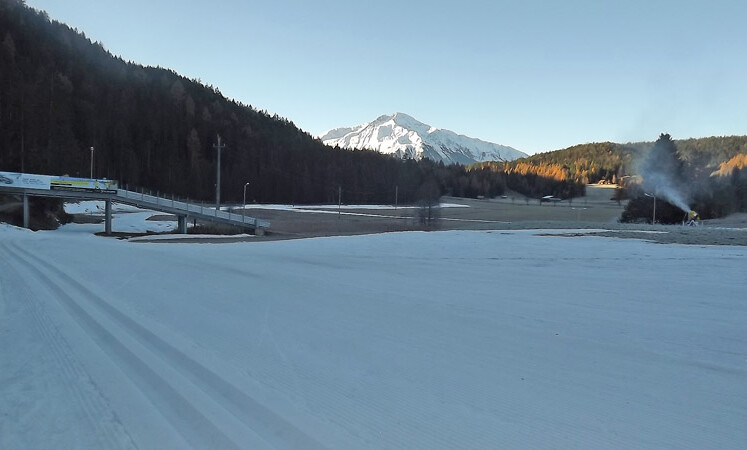 Während in ganz Deutschland keine Loipen unter freiem Himmel gespurt werden können, arbeitet man im österreichischen Seefeld hart am Erhalt einer ein Kilometer langen Runde im Langlaufstadion.