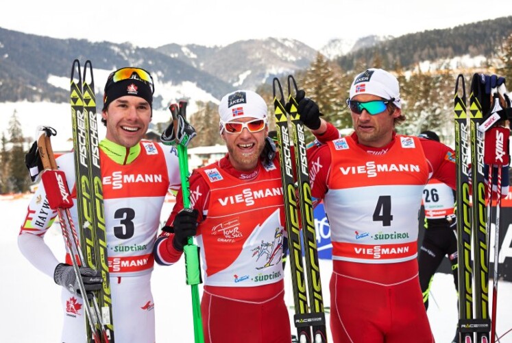 Ohne eine ersichtliche Schwäche während des 36,1 Kilometer langen Rennens sicherte sich Martin Johnsrud Sundby nach einer erstklassigen Leistung den Sieg, mit dem er die Führung in der Tour de Ski ausbaute. „Ich bin ein Tempo gelaufen, von dem ich dachte, ich könnte es während des ganzen Rennens halten. Natürlich bin ich auf Anschlag gelaufen und nun bin ich sehr erschöpft“, meinte Sundby. Er erreichte das Ziel 58 Sekunden vor seinen Verfolgern, bei denen auf den letzten Kilometern runter nach Toblach Taktieren angesagt war. Immer wieder wurden Blicke getauscht, doch die Führungsarbeit wollte niemand mehr so richtig übernehmen. Im Zielsprint meldete sich Petter Northug in alter Form zurück und stach seine Kontrahenten aus. Alex Harvey sicherte sich den dritten Platz vor Calle Halfvarsson und Alexander Legkov. Johannes Dürr belegte trotz eines Stockbruchs 200 Meter vor dem Ziel einen starken sechsten Platz vor Chris Jespersen und Ilia Chernousov.