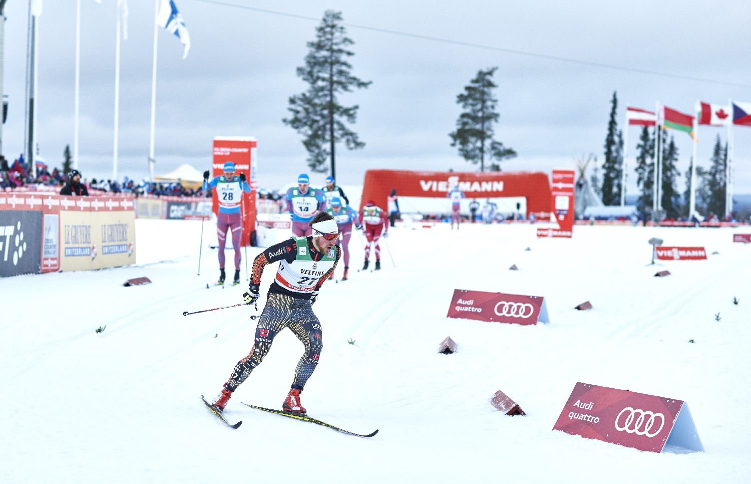 Erneut eine gute Vorstellung lieferte Jonas Dobler ab, der seine Position halten konnte und als 24. die Linie überquerte. Florian Notz verpasste den letzten Weltcuppunkt um etwa eine Sekunde nach einem ebenfalls guten Rennen. Die Schweizer Curdin Perl und Jonas Baumann sowie der Österreicher Bernhard Tritscher landeten ebenfalls außerhalb der Punkte wie auch Sebastian Eisenlauer, der 48. wurde. „Zufrieden bin ich nicht ganz, aber mit den Vorleistungen war es ein Wochenende, das okay war. Aber es ist noch eine Menge zu tun“, erklärte Herren-Trainer Janko Neuber.
